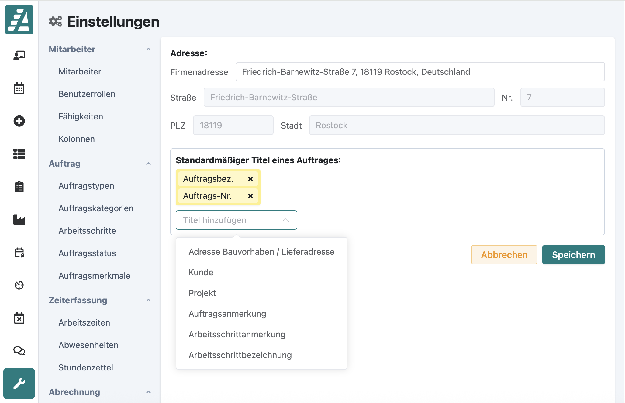 In den Einstellungen kann man die Zeilen, die angezeigt werden sollen für alle Mitarbeiter einstellen.