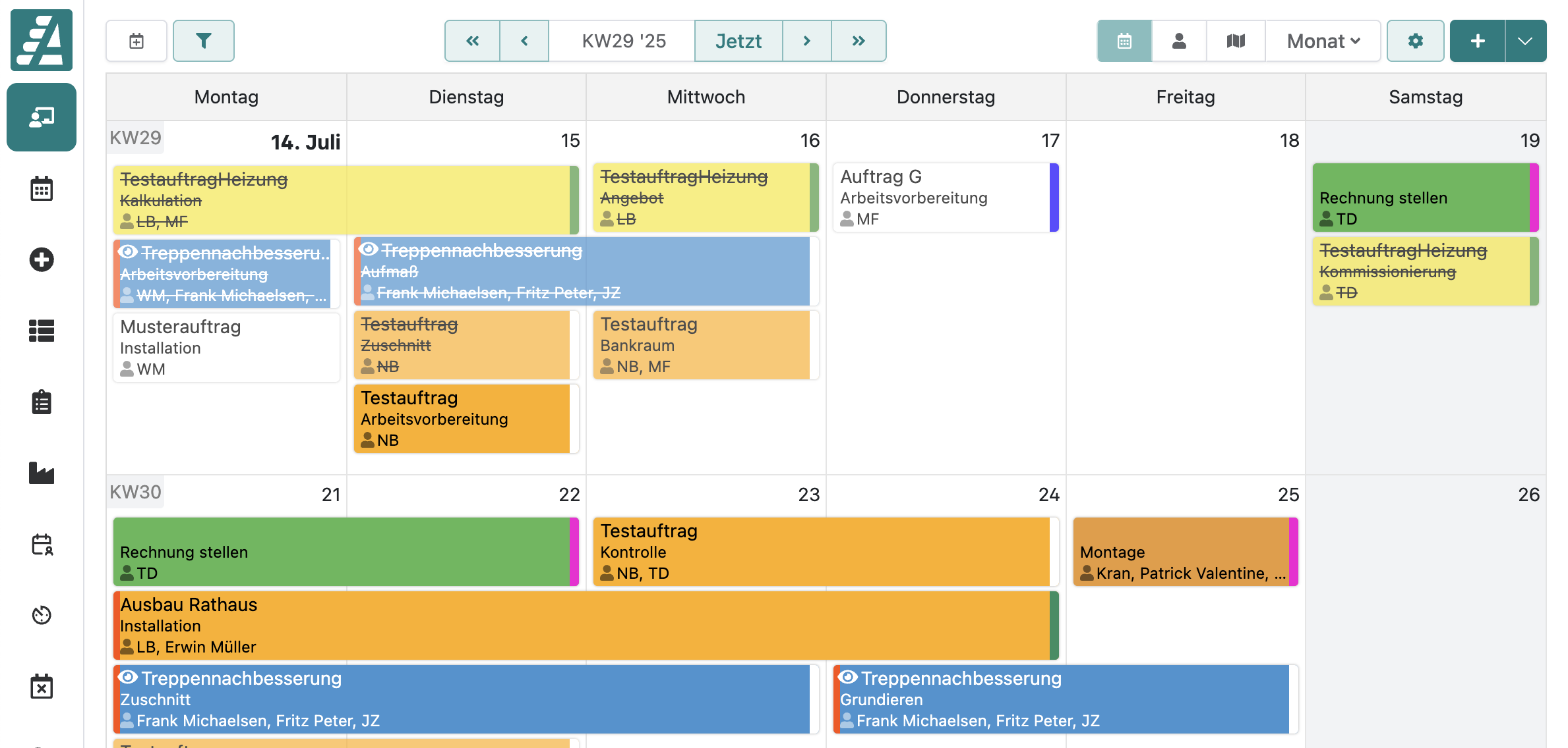 Dies ist jetzt auch in allen anderen Ansichten der Plantafel möglich. So kannst du in der Kalenderansicht oder der Mitarbeitertafel auch mit diesen Farben arbeiten.