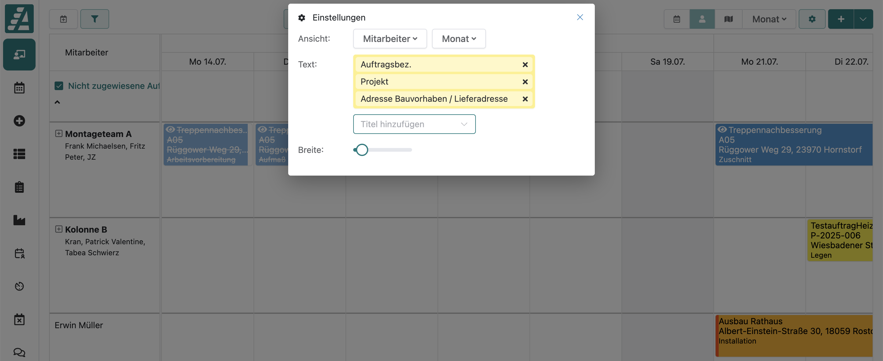 Die Auftragskärtchen in der Plantafel und Erfassung können nun flexibler eingestellt werden. Du kannst nun mehrere Zeilen anzeigen lassen, um mehr Informationen auf dem Kärtchen darzustellen.