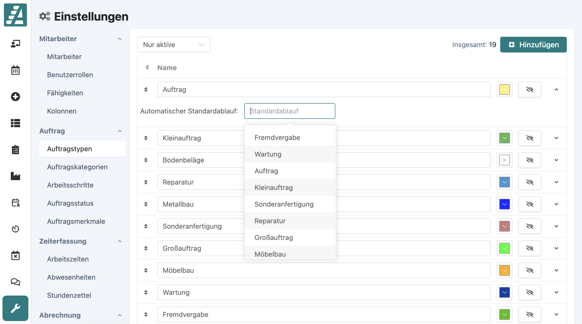 Auch für jeden Auftragstyp können individuelle Standardabläufe definiert werden.